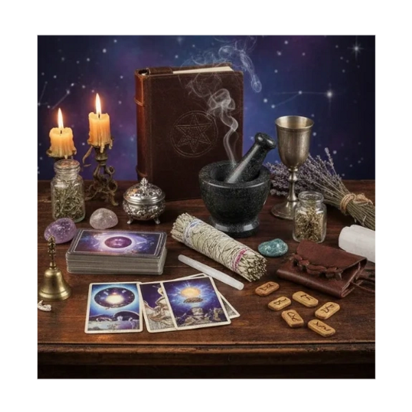 Includes: tarot, oracle, runes, pendulums, scrying mirrors, astrology charts.